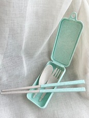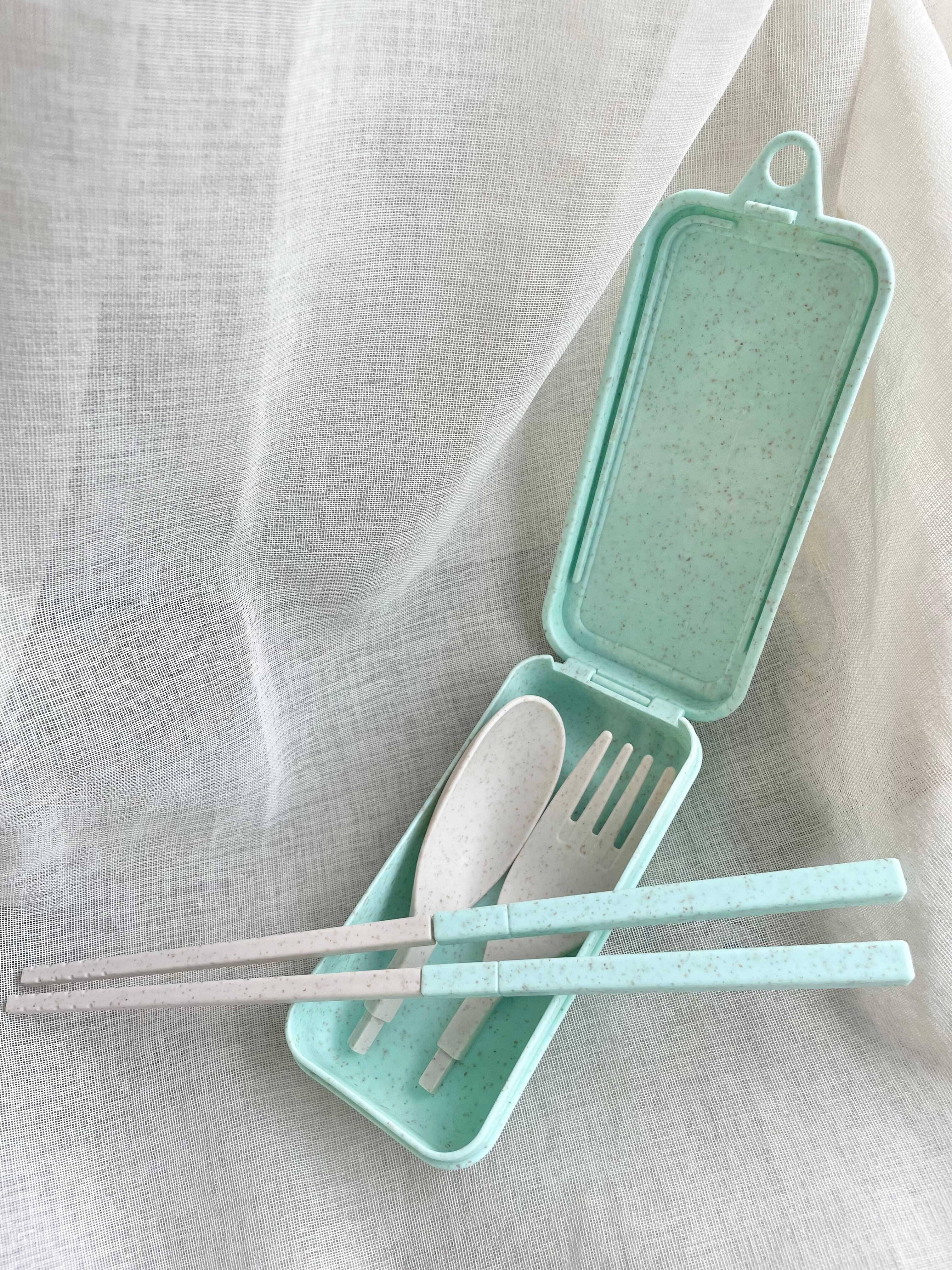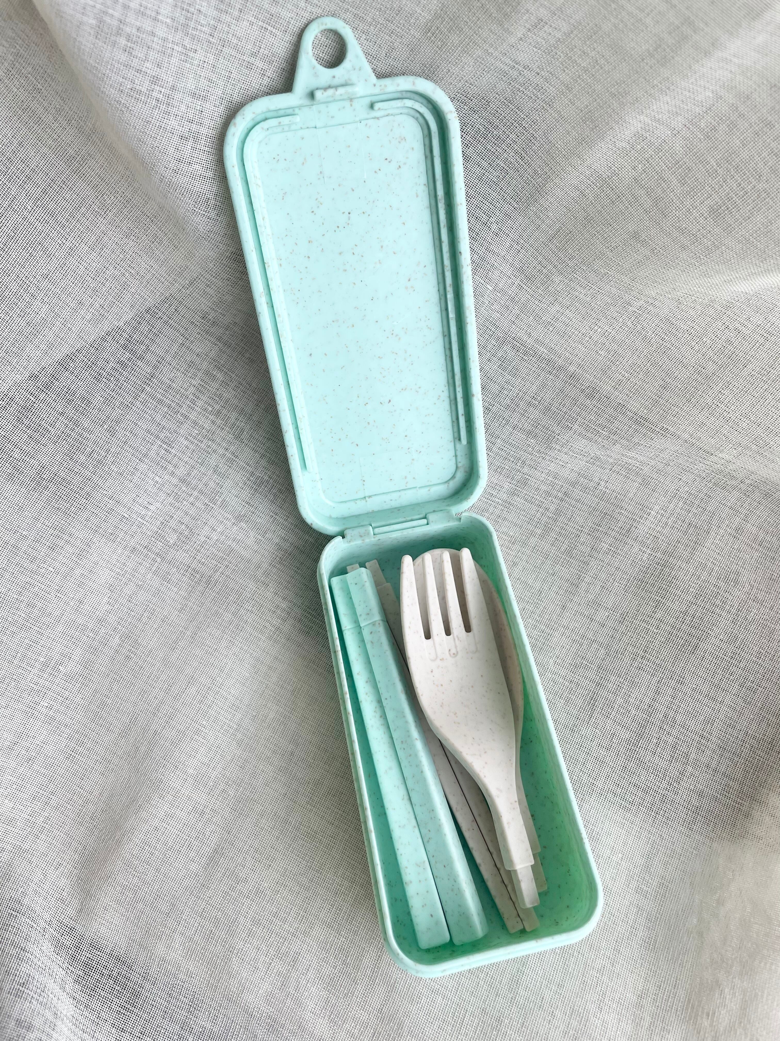 竹繊維とプラスチックを混合して作られたコンパクトなカトラリーセット。